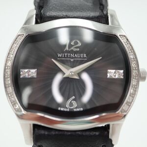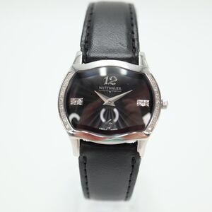 Wittnauer Womens Diamond Watch 30mm Swiss Sapphire Crystal Black Leather Strap