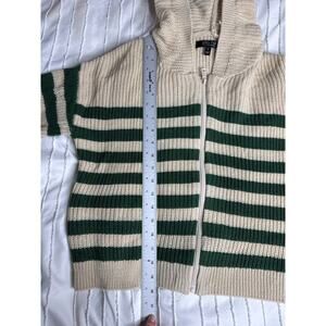 Witty Fox Women’s Small Knit Zip Hoodie – Cream w/ Green Stripes