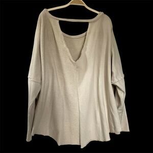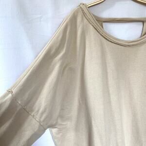 Wiya Italy Oversized Terry Knit Sweater Women Size 10 Beige Boho Slouchy Cutout