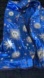 Vibrant blue pants and matching hat with celestial sun and star print. Perfect for a bold statement look. (Costume Bag)