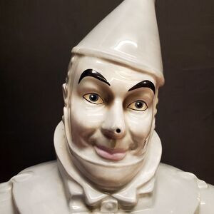 SCARECROW=His condition is good overall. He also has a few chips in his glazing. One notable on the tip of his nose. Measures approx. 7" tall x 7" wide by 4" deep.