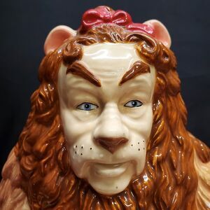 COWARDLY LION=His condition is good overall. He also has a few chips in his orange/brown glazing, but no cracks or other damage. Measures approx. 7" tall x 7" wide x 5" deep.