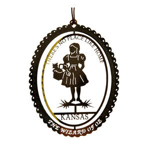 The ornament is a must-have for fans of The Wizard of Oz and makes for a great gift for family or friends who share your love of the movie and the iconic phrase "There's No Place Like Home". Bring the magic of Oz into your home with this timeless ornament. Lightweight and delicate brass ornament is twisted slightly by hand to give a 2D effect when hanging and it measures 2.25 x 3 inches.