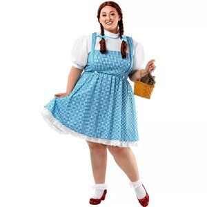 Wizard of Oz Dorothy Costume L/XL- Halloween Adult Blue Gingham Dress One Piece