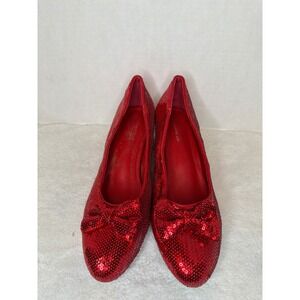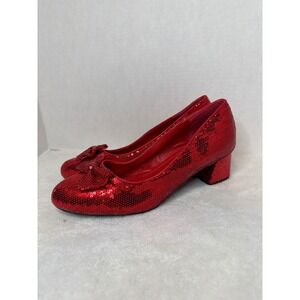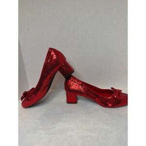 Wizard of Oz Ruby Red Sequin Bow Block Heel Shoes Costume Halloween Theater