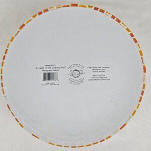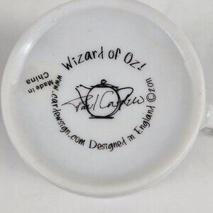 Colorful 3 oz tea party set with 5 cups and 5 saucers. Each cup is decorated with a favorite character from the Wizard of Oz - Dorothy, The Scarecrow, The Lion, The Tin Man and The Wicked Witch. The interior of each cup reads "the wonderful Wizard of Oz". The saucers all have Toto the dog on the Yellow Brick Road. The original box is round and has indents for all pieces for security. Pieces are microwave and dishwasher safe. A fun gift for yourself or a loved one.