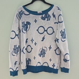 Wizarding World Blue/blue Pajama Top/Sweatshirt with Harry Potter Motif. Large