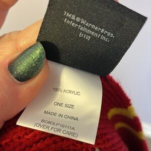 Wizarding World of Harry Potter Universal Gryffindor Striped Knit Scarf Large. Good preowned condition. Minor wear. Two small pulls shown in pictures. Gold yellow and red of house Gryffindor. Very long and wide good quality scarf. See pictures for approximate measurements. Length folded in half. Length approximately 84 inches. Ends have short fringe. Costume. Cosplay. Winter.