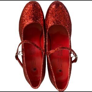 Wizard of Oz ruby slippers platform style with adjustable band, 4.5” heel and 2” platform. Purchased from Rubie’s Costume Shop and are super high quality. Large fits sizes 9 to 10.