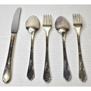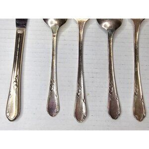This elegant vintage silverware set by Wm. A. Rogers A1 Plus Oneida Ltd. includes a knife, two spoons, and two forks, enhancing dining experiences.