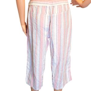 Wm Linen Blend Striped Capri Sz M Lagenlook Coastal Grandma Loose Fit Spring