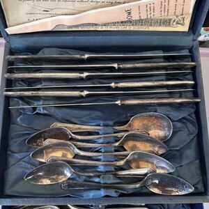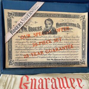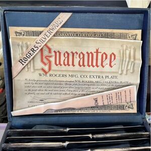 Wm. Rogers Lancaster Pattern AA Plate 26 Piece Flatware Set In Original Box. 1939. Most of the set has a lot of tarnish, but all utensils are in good condition. Box has some damage due to age.