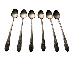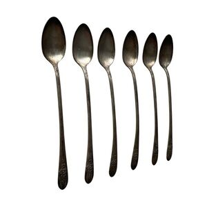 Wm Rogers Mfg Co AA IS Long Handle Spoons Antique Set Of 6 Mixing Stir Floral