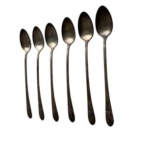 Antique Vintage WM Roger’s Mfg IS Mixing Spoons Set of 6 long handle Silver Plated