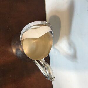 This silverplate water pitcher, distinguished by its Victorian Rose pattern, adds elegance to any setting. It features an ice lip for seamless serving, while the ornate handle and footed base enhance its aesthetic appeal. Crafted by Wm Rogers & Son, this piece combines functionality with timeless style, ideal for formal dining experiences.