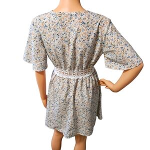 Wmns Ditsy Floral Kimono Mini Dress Boho Cottagecore Lace Waist Cutout XS/S