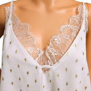Wmns Ivory & Gold Lace Trim Crinkle Gauze Cami Sz M Romantic Coquette Scalloped