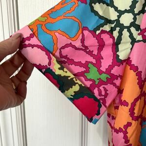 Wms L Vibrant Colorful Floral SS Button Up Tunic Shirt Dopamine Dressing