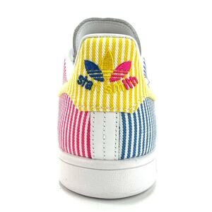 🐢 Women Sneaker Size 11 Adidas Stan Smith Pride Love Unites Special Edition Laced White Leather Blue Pink and Yellow Textile Low-Top Embroidered FY9021 New.