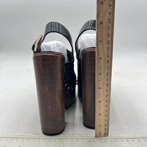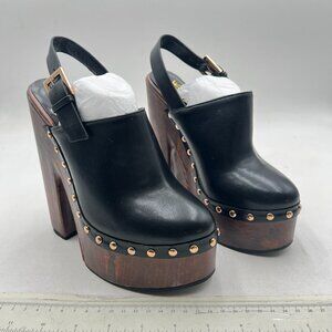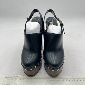 Wo Wagas Black Chic Closed Toe Studded Clog Platform Slingback Buckle Strap Shoe