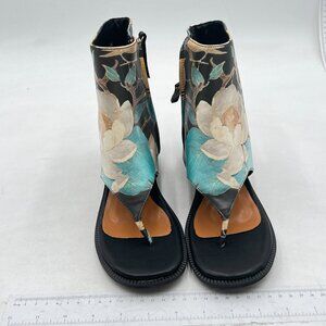 Wo Wagas Flower Ankle Sandals Boots Chunky Low Heel Flip Flop Open Toe Shoes