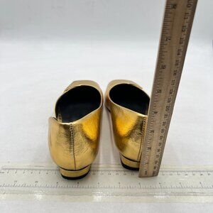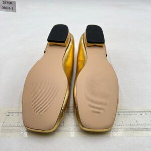 Wo Wagas Gold Side Cut Block Low Heeled Square Toe Slip On Pump Working Shopping Party