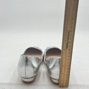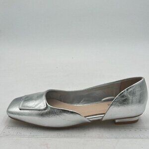 Wo Wagas Silver Pumps Side Cut Block Low Heels Square Toe Slip On Shoes Working Shopping Party