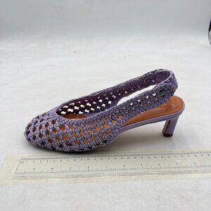 Wo wagas Purple Slingback Square Toe Pumps Slip On Low Kitten Heel Woven Sandal
