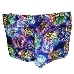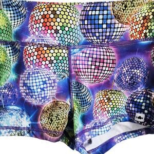 Wodbottom Size XL Crossfit Shortie Shorts Purple Disco Ball Print Gym Workout