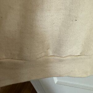 A few spots shown in photos, but honestly not super noticeable with the color of the sweatshirt.