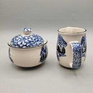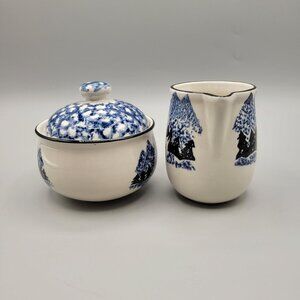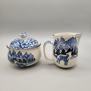 Wolf Covered Sugar and Creamer Set Blue Spongewear Folk Craft Tien Shan
