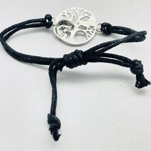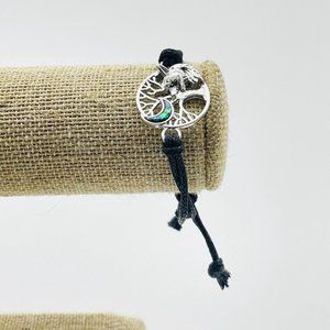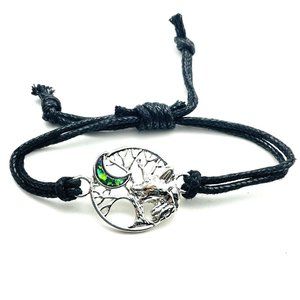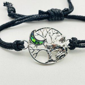 Wolf Crescent Moon and Tree Charm Bracelet Black Faux Suede Adjustable Boho Fest