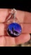 Teardrop pendant with a wolf silhouette against a starry night sky and mountain trees sealed in clear resin. Features shades of blue and purple. Comes with a 20 sterling silver chopan chain.