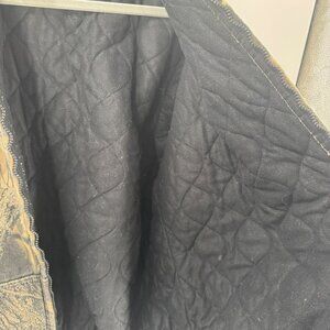 This camouflage jacket is designed for outdoor activities, providing warmth with its quilted lining and durability with its rugged construction. Ideal for hunting or cold-weather tasks.