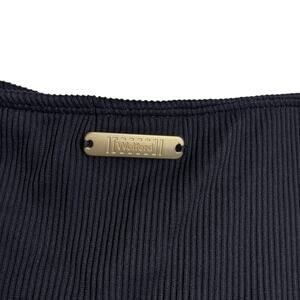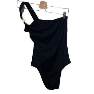 Wolford Black Ribbed One Shoulder Gold Hardware Swimsuit Medium