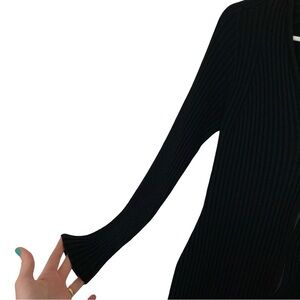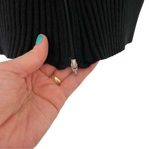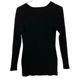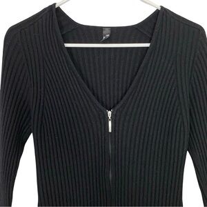 Wolford Cardigan Sweater Womens Size Medium Black Ribbed Full Zip Up V Neck LS