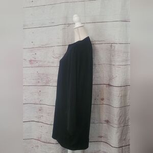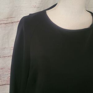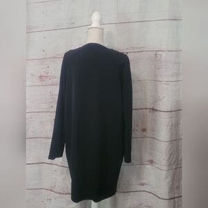 Black long sleeve viscose dress that falls at the knees. In good condition.