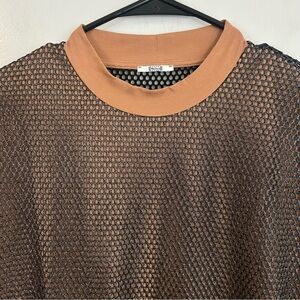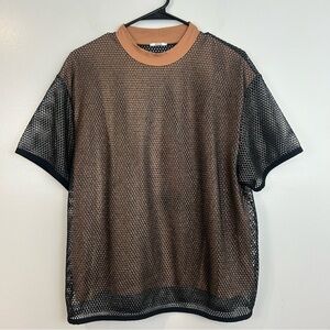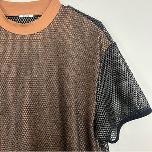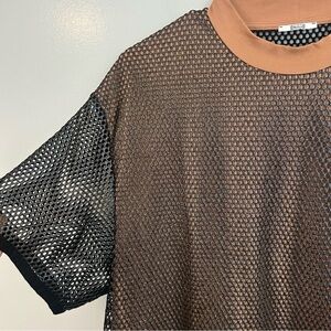 Wolford Net/Mesh Overlay Black/Nude Metallic Oversized T-Shirt Size Small