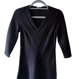 Wolford Size XS Black V-Neck Ribbed A-Line Midi Shania Dress Stretch 3/4 Sleeves