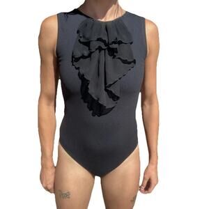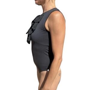 Wolford Small Black Ruffle Front Sculpting Stretch Sleeveless Thong Bodysuit