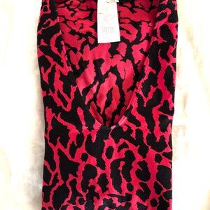 Wolford Top Cheetah Animal Print Long Puff Sleeve Red Stretch Bodycon Sz S