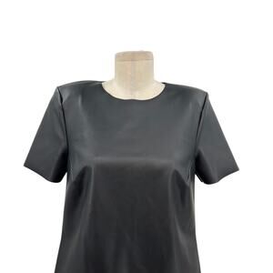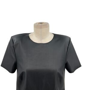 Wolford Vegan Dress Shift Short Sleeve Faux Leather Black Size 40 US 10