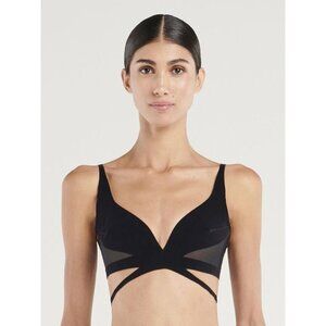 Wolford x Mugler Flock Shaping Bra in Black 36D Womens Velvet Wrap Bralette