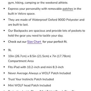 Mini Wolfpak backpack (9L) in excellent condition. Bought it thinking I would use it for the gym, but decided I needed something bigger. Used maybe twice.