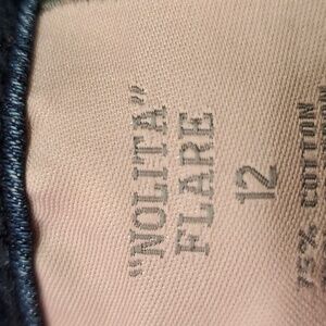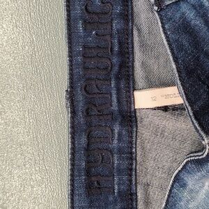 fun jeans and so comfortable with lots of stretch. Size 12, waist flat measurement is 19". Inseam is 33". Top to bottom length is 42". Rise is 11/16. Good used condition. Consider making a bundle and get an even better offer.