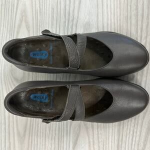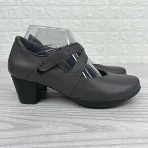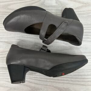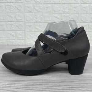 Wolky Mary Jane Pump Shoes SZ 38 Gray Black Hook Loop Strap Block Heels Leather