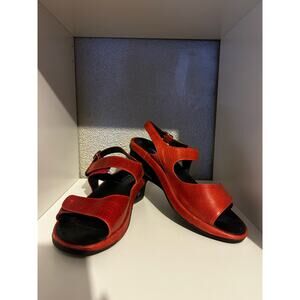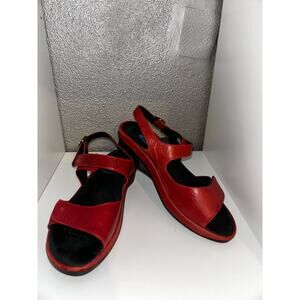 Wolky Red Leather Sling Back Comfort Wedge Sandal 38 / 6.5 - 7
