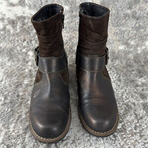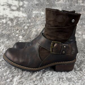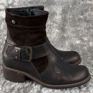 Wolky Size 36/5.5 Suede Metallic Leather Ankle Boots Brown Buckle Zip Block Heel