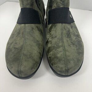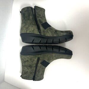 Wolky Women 38 US 7.5 Omni Casual Side Zip Wedge Ankle Bootie Green Leather Boot