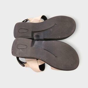 Stylish beige and black sandals with adjustable straps. Perfect for casual outings.